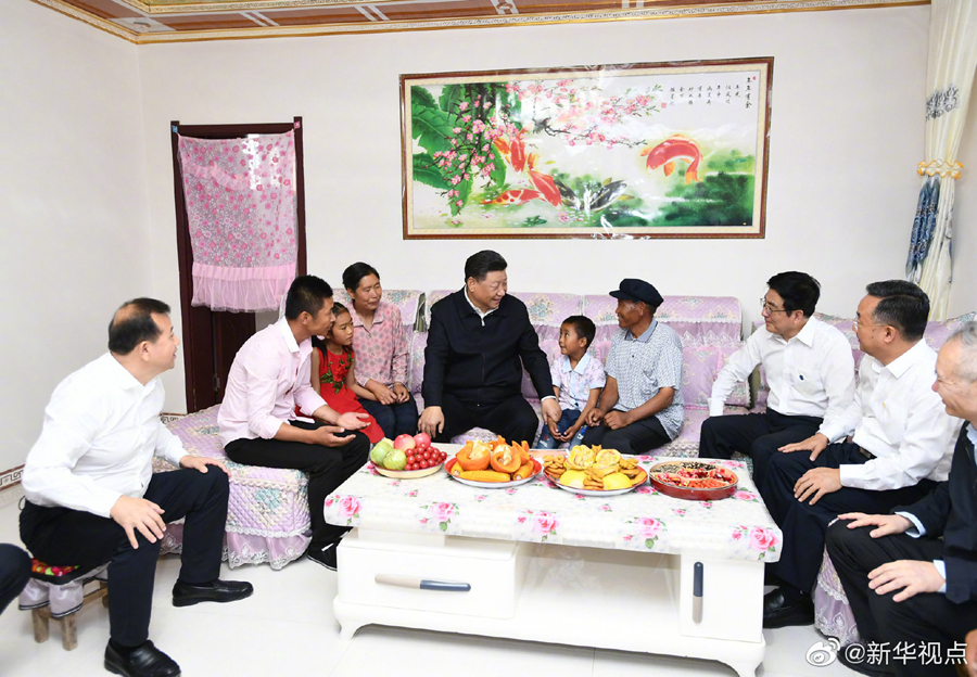 富民新村地處甘肅省古浪縣黃花灘生態(tài)移民區(qū),習(xí)近平總書記21日上午來到這里,看望從山區(qū)生態(tài)移民易地扶貧搬遷的鄉(xiāng)親們。他走進(jìn)村民李應(yīng)川家,小院潔凈、住房敞亮、廚衛(wèi)設(shè)施齊全。在客廳坐下來,李老漢拿出一張搬遷前的老照片給總書記看,曾經(jīng)居住的土坯房同窗明幾凈的新居有天壤之別。習(xí)近平對這里群眾生產(chǎn)生活條件發(fā)生的巨大變化感到十分欣慰,李老漢連連感嘆現(xiàn)在日子太幸福了。習(xí)近平強(qiáng)調(diào),你們高興我們也高興,共產(chǎn)黨就是為人民服務(wù)的,就是為老百姓辦事的,讓老百姓生活更幸福就是共產(chǎn)黨的事業(yè)。(文字記者:張曉松、朱基釵 攝影記者:鞠鵬、謝環(huán)馳)