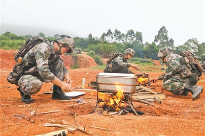 中午,五連炊事班接到“生火造飯”的命令后立即展開作業。誰知,米剛下鍋不到10分鐘,就接到突如其來的“敵情”:“一小股‘敵人’正向你方隱蔽機動,迅速轉移。”