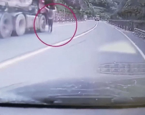 掛車在距國(guó)道繁忙路段僅30米處停下
