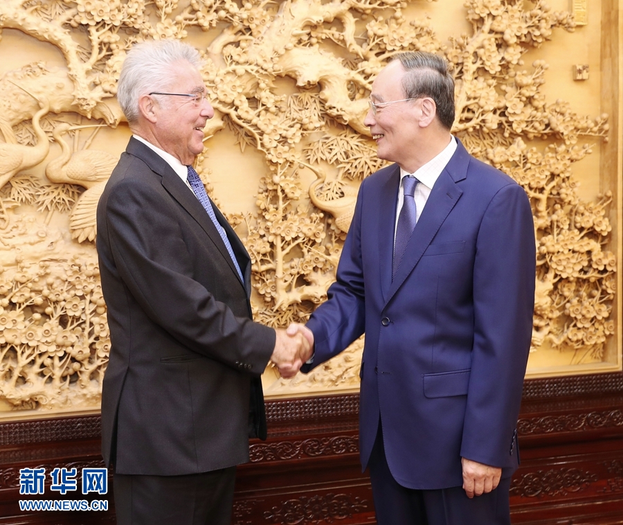 9月11日,國家副主席王岐山在北京中南海會見奧地利中國友好協會主席、前總統菲舍爾。 新華社記者 姚大偉 攝