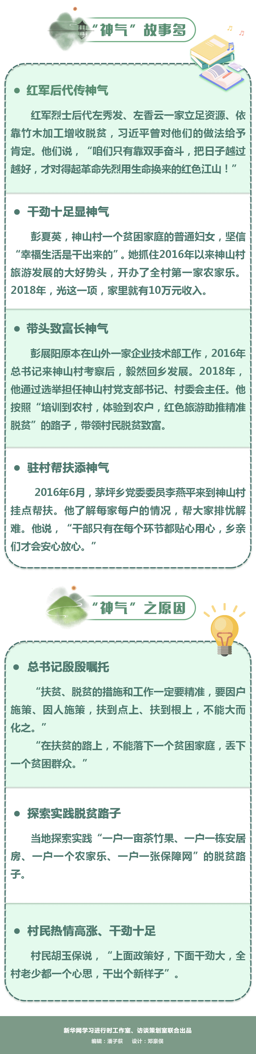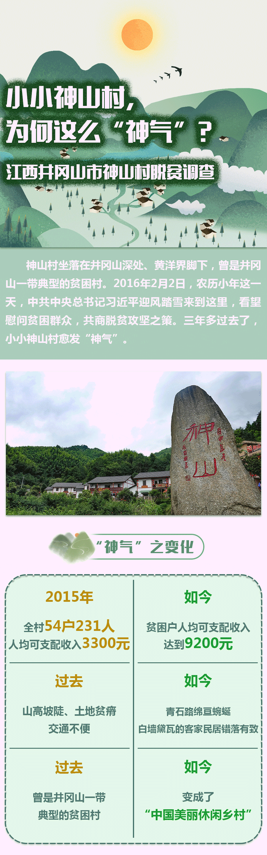 小小神山村,像這樣的故事還很多。在跨越時空的井岡山精神鼓舞下,神山村正闊步行進在新時代鄉村振興的大路上,必將書寫更多新的“神氣”故事。