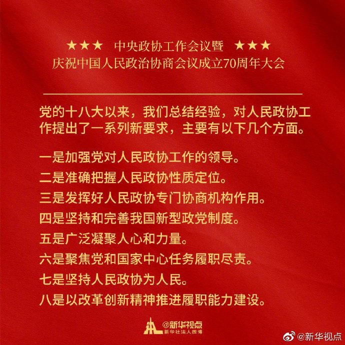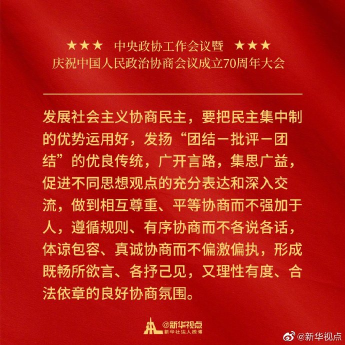 金句來了!習近平在中央政協(xié)工作會議暨慶祝中國人民政治協(xié)商會議成立70周年大會上的講話金句?? ?????