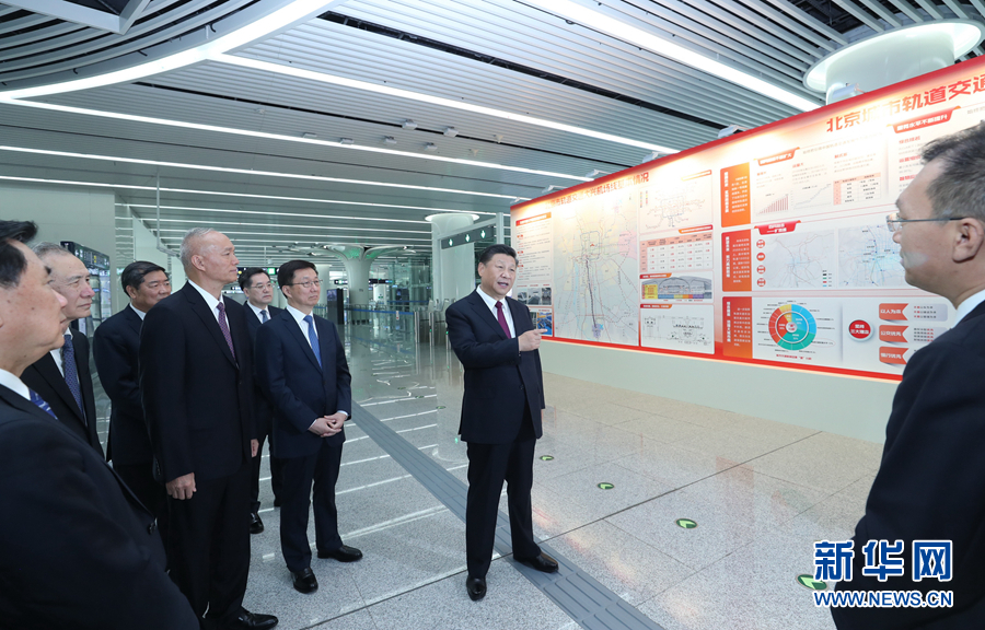 在草橋站進站大廳,習近平結合展板聽取情況介紹。習近平強調,城市軌道交通是現代大城市交通的發展方向。發展軌道交通是解決大城市病的有效途徑,也是建設綠色城市、智能城市的有效途徑。北京要繼續大力發展軌道交通,構建綜合、綠色、安全、智能的立體化現代化城市交通系統,始終保持國際最先進水平,打造現代化國際大都市。