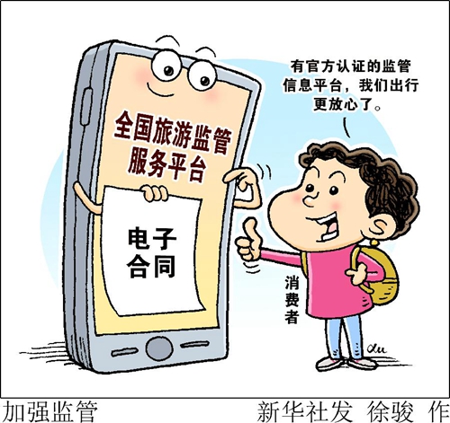 “我剛給全家人從旅行社訂了跟團游,就收到了提醒簽約旅游電子合同的短信。有官方認證的監管信息平臺,我們出行更放心了。”上海市民方赟梅說,家人和朋友對納入“全國旅游監管服務平臺”的電子合同頻頻點贊。