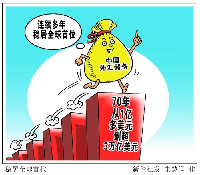 新華社北京9月27日電(記者劉開雄)從1億多美元到超3萬億美元,從新中國成立之初的捉襟見肘到如今占全球總規模近三分之一——70年,伴隨著中國經濟的發展與騰飛,中國外匯儲備不斷創造輝煌。據國家外匯管理局最新數據,截至2019年8月末,中國外匯儲備規模達31072億美元,連續多年穩居全球首位。