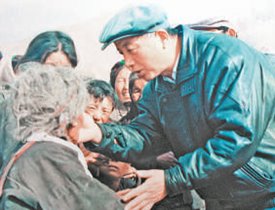 在西藏工作,孔繁森深深愛上了這片壯麗、神奇的高原,還有這里的人民。1988年,山東再次選派進藏干部,孔繁森第二次赴藏工作。進藏后,孔繁森擔任拉薩市副市長,分管文教、衛生和民政工作。到任僅4個月,他就跑遍了全市8個縣區所有的公辦學校和一半以上的村辦小學,為發展少數民族的教育事業奔波操勞;為結束尼木縣續邁鄉等3個鄉群眾易患大骨節病的歷史,他多次爬到海拔近5000米的山頂水源處采集水樣,幫群眾解決飲水問題;在了解農牧區缺醫少藥的情況后,他每次下鄉時都特地帶一個醫療箱,工作之余就給農牧民群眾認真地聽診、把脈、打針……