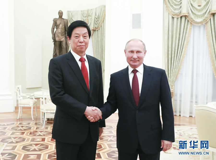 會見普京時,栗戰(zhàn)書首先轉達了習近平主席的親切問候。栗戰(zhàn)書說,在習近平主席和總統(tǒng)先生的戰(zhàn)略引領和推動下,中俄關系達到前所未有的高度,邁入更高水平、更大發(fā)展的新時代。在當前國際形勢下,中俄應更加堅定相互支持,共筑兩國戰(zhàn)略依托和安全屏障,推動構建新型國際關系和人類命運共同體。要在兩國元首的戰(zhàn)略引領下,把政治互信和戰(zhàn)略協(xié)作推向新高度,把經貿合作推向新水平,推動中俄新時代全面戰(zhàn)略協(xié)作伙伴關系不斷向前發(fā)展。普京請栗戰(zhàn)書轉達對習近平主席的良好祝愿。他說,俄中關系是當今世界大國關系的典范。俄中新時代全面戰(zhàn)略協(xié)作伙伴關系建立在遵守國際法基礎上,符合兩國及兩國人民利益。當前兩國各領域合作都向著既定目標穩(wěn)步推進。要在現(xiàn)有基礎上,深化全面合作,把兩國關系發(fā)展得更好。