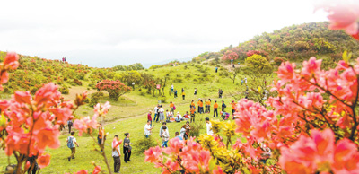 江西牙梳山風景區(qū),大片鮮艷的杜鵑花競相綻放。影像中國