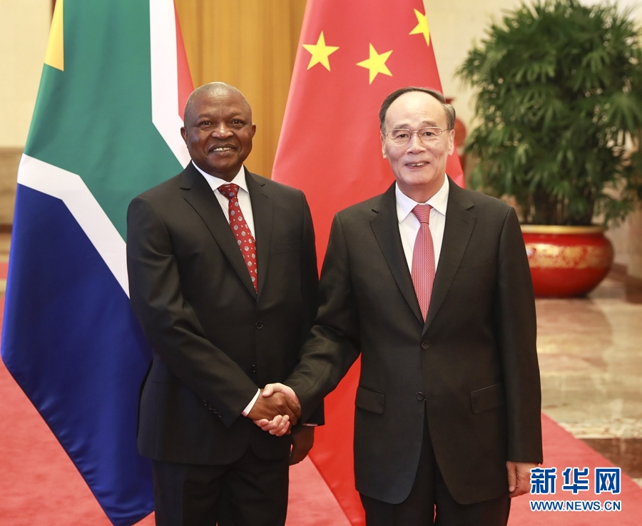 王岐山表示,中國和南非同為重要發展中大國和新興市場國家,互為重要的戰略伙伴。兩國關系意義已超越雙邊范疇,戰略和全球影響不斷上升。去年以來,習近平主席同拉馬福薩總統實現歷史性互訪,達成重要共識,為兩國關系發展提供了引領。雙方政治互信不斷增強,在經貿投資、人文交流等領域合作成果豐碩,走在中非合作前列。