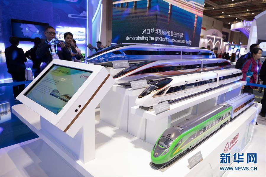11月8日,參觀者在第二屆進博會中國館中國鐵路展臺參觀。 第二屆中國國際進口博覽會中國館以慶祝新中國成立70周年為主題,呈現(xiàn)70年來新中國面貌發(fā)生翻天覆地的變化,展示我國經(jīng)濟社會發(fā)展的歷史性成就和新時代新機遇。 新華社記者 金立旺 攝
