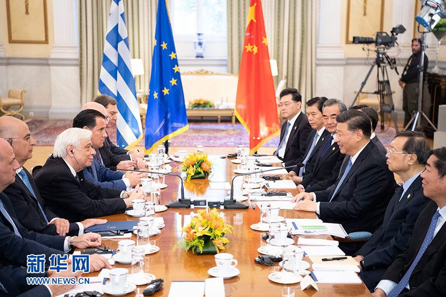當(dāng)?shù)貢r(shí)間11月11日,國(guó)家主席習(xí)近平在雅典同希臘總統(tǒng)帕夫洛普洛斯會(huì)談。 新華社記者 姚大偉 攝
