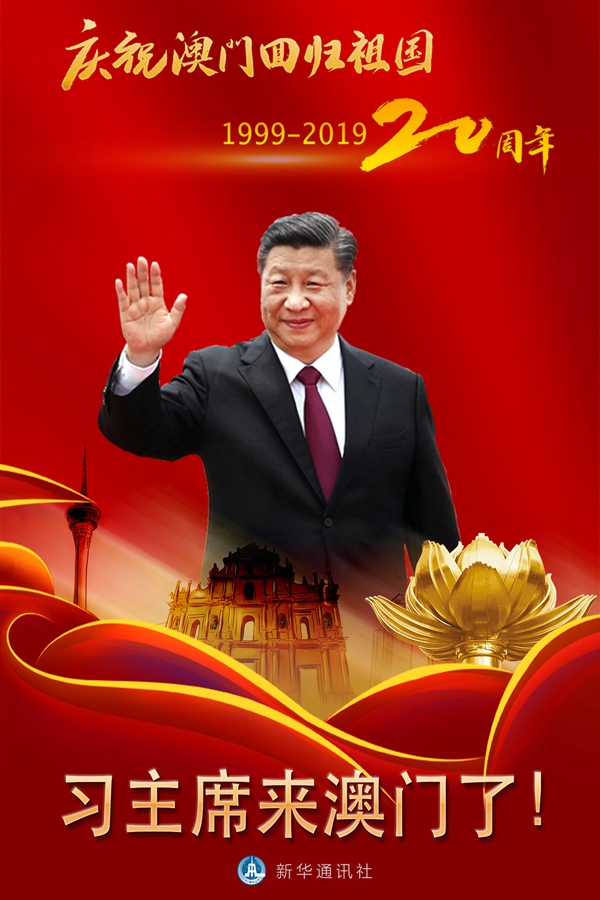 新華社快訊:中共中央總書記、國家主席、中央軍委主席習近平18日下午乘專機抵達澳門,出席將于20日舉行的慶祝澳門回歸祖國20周年大會暨澳門特別行政區第五屆政府就職典禮,并視察澳門特別行政區。