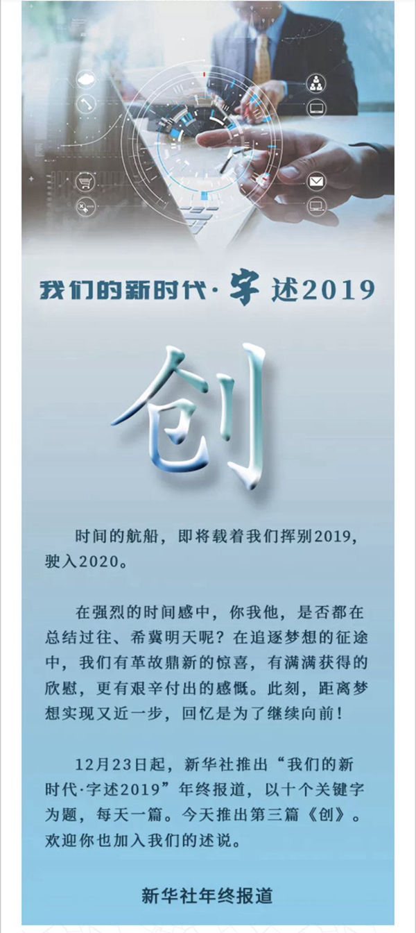 鴻蒙初辟,天地始開。不經(jīng)一番篳路藍(lán)縷,哪來春華秋實?不信你看,創(chuàng)新路上,載人航天再飛天,大興機場始展翅,國產(chǎn)航母初入列……2019一個個“中國創(chuàng)造”,向世人展示大國創(chuàng)新的萬千氣象!