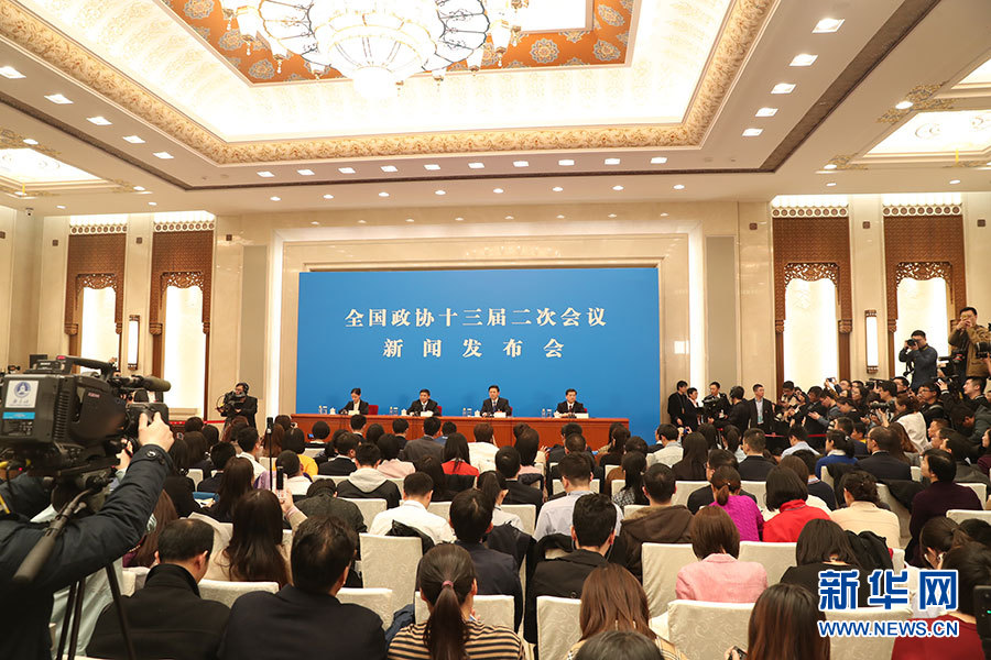 全國政協十三屆二次會議新聞發布會于3月2日15:00在人民大會堂一層新聞發布廳召開,大會新聞發言人郭衛民向中外媒體介紹本次大會有關情況并回答記者提問。圖為新聞發布會現場。