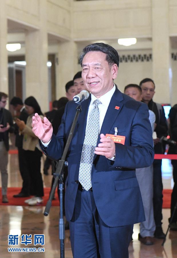這是全國政協委員吳偉仁在“委員通道”接受采訪。 新華社記者 陳曄華 攝