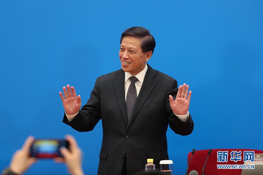 十三屆全國人大二次會議3月4日上午11時15分在人民大會堂新聞發布廳舉行新聞發布會,由大會發言人張業遂就大會議程和人大工作相關的問題回答中外記者提問。圖為張業遂向記者示意。新華網/中國政府網?陳杰 攝