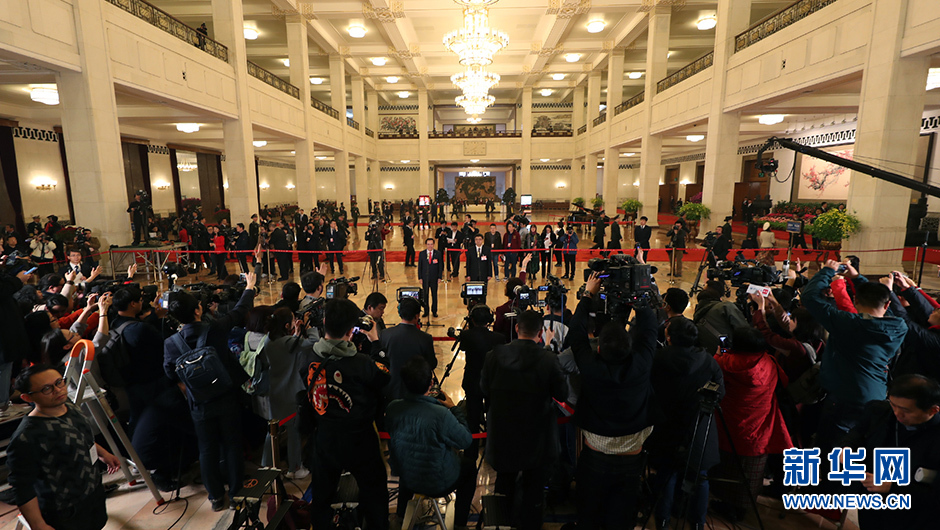? 3月5日,第十三屆全國人民代表大會第二次會議在北京人民大會堂開幕。這是全國人大代表在“代表通道”接受采訪。新華網(wǎng)/中國政府網(wǎng) 陳杰 攝