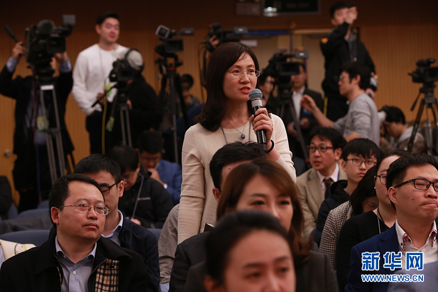 十三屆全國人大二次會議新聞中心于3月6日(星期三)上午10時在梅地亞中心新聞發布廳舉行記者會,邀請國家發展改革委主任何立峰,副主任寧吉喆、連維良就“大力推動經濟高質量發展”相關問題回答中外記者的提問。圖為中國改革報改革網記者提問。新華網/中國政府網 劉廈 攝?