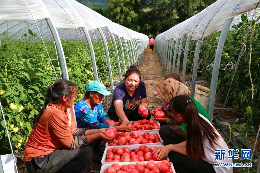 趙會杰在蔬菜大棚了解西紅柿的生長情況(資料照片)。 新華社發(李國志 攝)