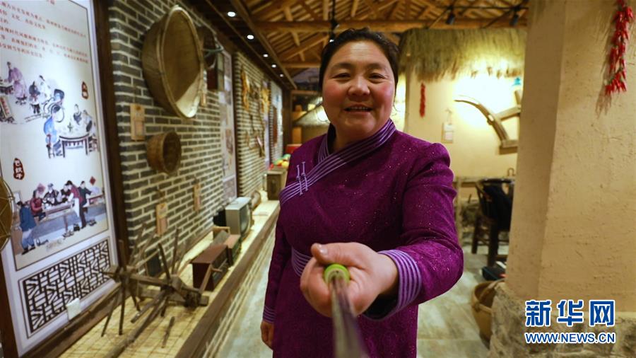趙會杰在村里的民俗博物館自拍錄視頻,展示保留下來的老物件。 新華社發(視頻截圖)