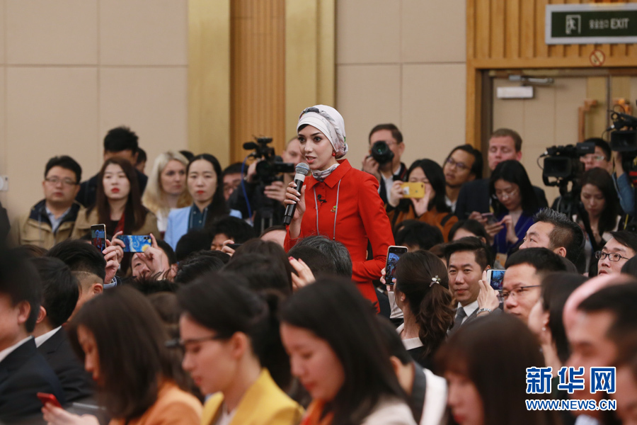 十三屆全國人大二次會議新聞中心3月8日10時在梅地亞中心新聞發布廳舉行記者會,邀請國務委員兼外交部長王毅就“中國外交政策和對外關系”相關問題回答中外記者提問。圖為中阿衛視記者。新華網/中國政府網 馬娟 攝