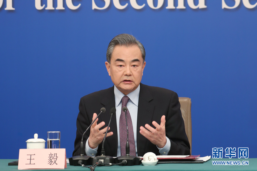十三屆全國人大二次會議新聞中心3月8日10時在梅地亞中心新聞發布廳舉行記者會,邀請國務委員兼外交部長王毅就“中國外交政策和對外關系”相關問題回答中外記者提問。圖為王毅回答記者提問。新華網/中國政府網 陳杰 攝