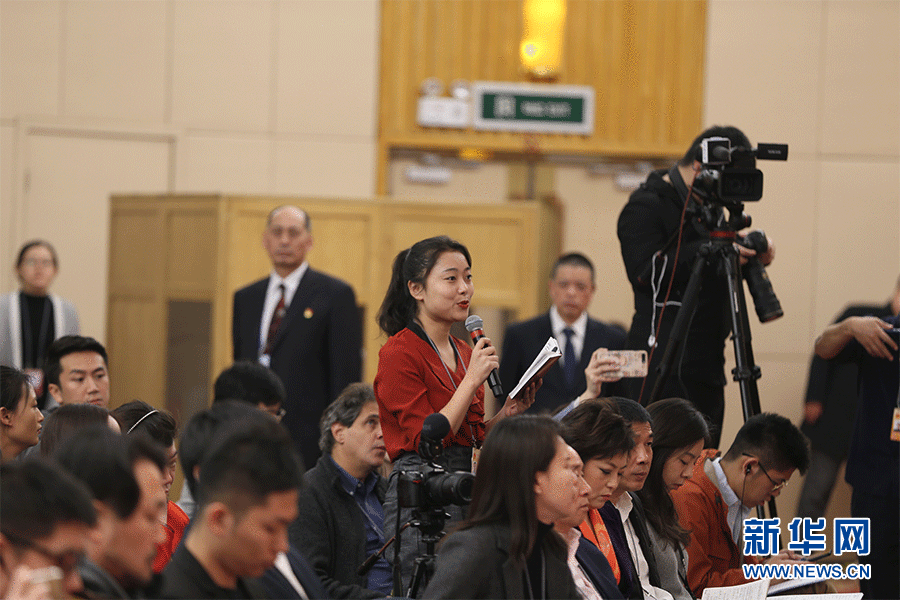 十三屆全國人大二次會議新聞中心3月9日(星期六)10時30分在梅地亞中心新聞發布廳舉行記者會,邀請商務部部長鐘山、副部長兼國際貿易談判副代表王受文、副部長錢克明就“促進形成強大國內市場 推動全方位對外開放”相關問題回答中外記者提問。圖為齊魯晚報齊魯壹點記者提問。新華網/中國政府網 劉廈 攝