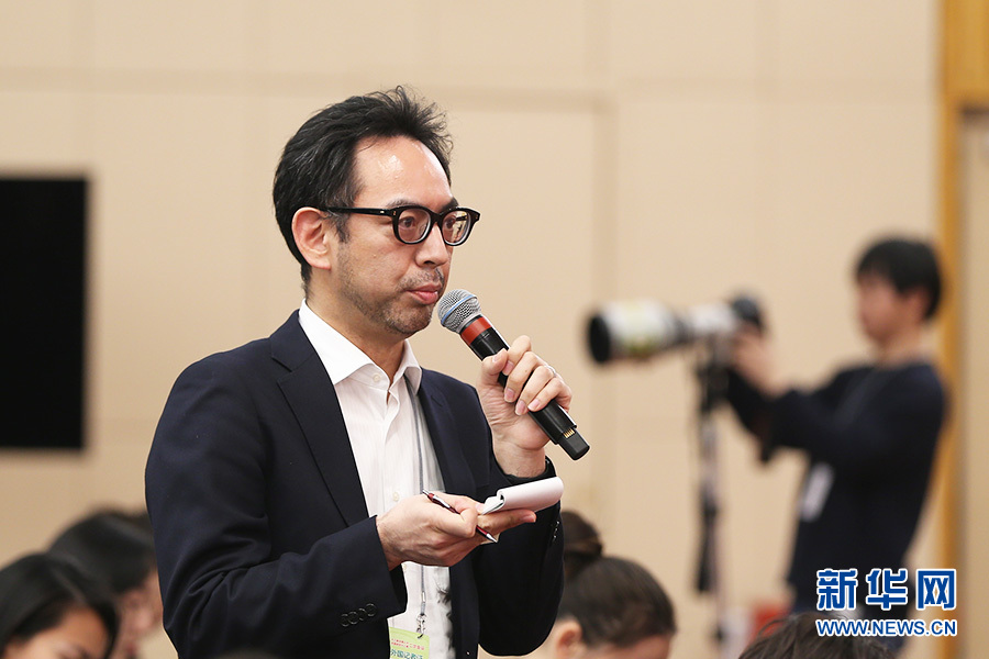 十三屆全國人大二次會議新聞中心3月9日(星期六)15時在梅地亞中心新聞發布廳舉行記者會,邀請國務院國資委主任肖亞慶,副主任翁杰明,秘書長、新聞發言人彭華崗就“國有企業改革發展”相關問題回答中外記者提問。圖為日本共同社記者提問。新華網/中國政府網 劉廈 攝