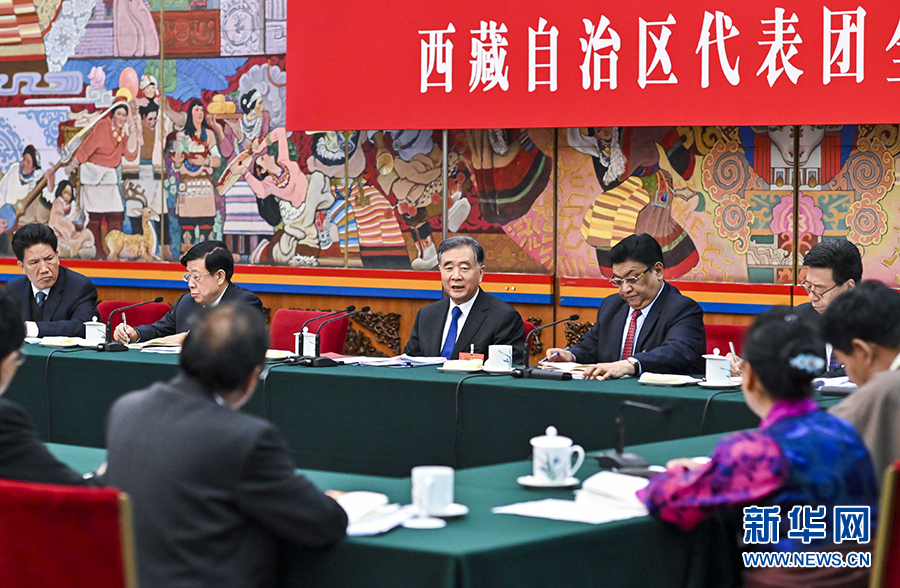 汪洋在西藏代表團參加審議。在聽取普布頓珠、格桑卓嘎、扎西江村等代表發言后,汪洋表示,完全贊成栗戰書委員長所作的全國人大常委會工作報告。汪洋充分肯定過去一年西藏各項事業發展成績,指出西藏經濟發展和社會穩定持續向好,但也要看到風險挑戰。要深入學習貫徹習近平總書記關于西藏工作的重要論述,牢牢把握維護祖國統一、加強民族團結的著眼點和著力點,牢牢把握依法治藏、富民興藏、長期建藏、凝聚人心、夯實基礎的重要原則,居安思危、穩中求進,進一步鞏固社會大局穩定好局面,進一步加強寺廟管理能力建設,進一步提高脫貧攻堅質量,確保雪域高原安定祥和、各族人民安居樂業。