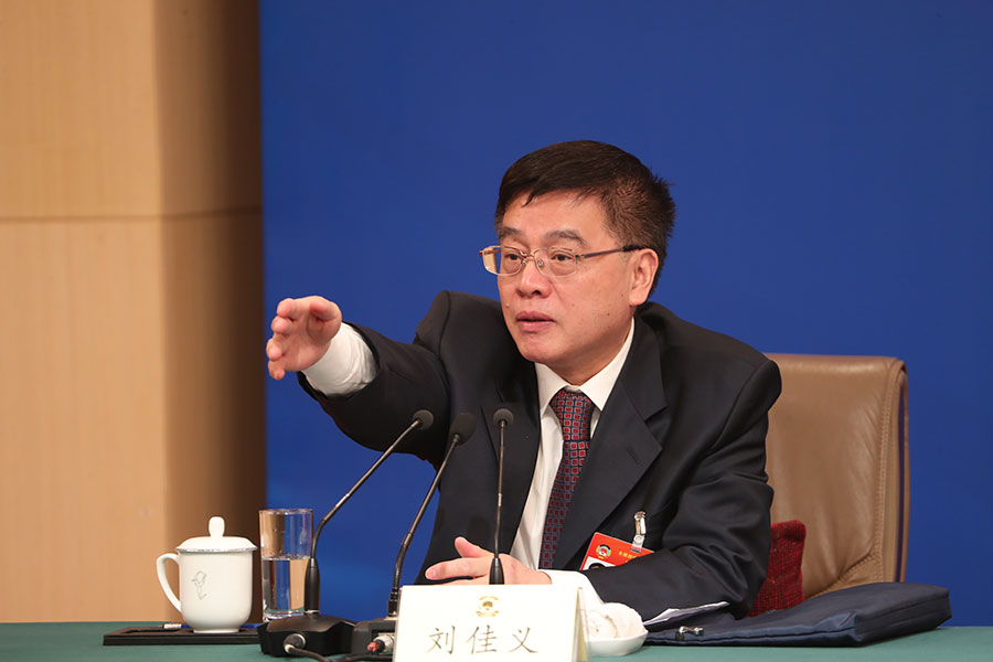 全國政協十三屆二次會議3月10日(星期日)上午8:45在梅地亞兩會新聞中心舉行記者會,邀請5位政協委員就“新時代政協履職”回答記者提問。新華網、中國政府網進行現場直播。圖為主持人劉佳義。新華網/中國政府網 陳杰攝