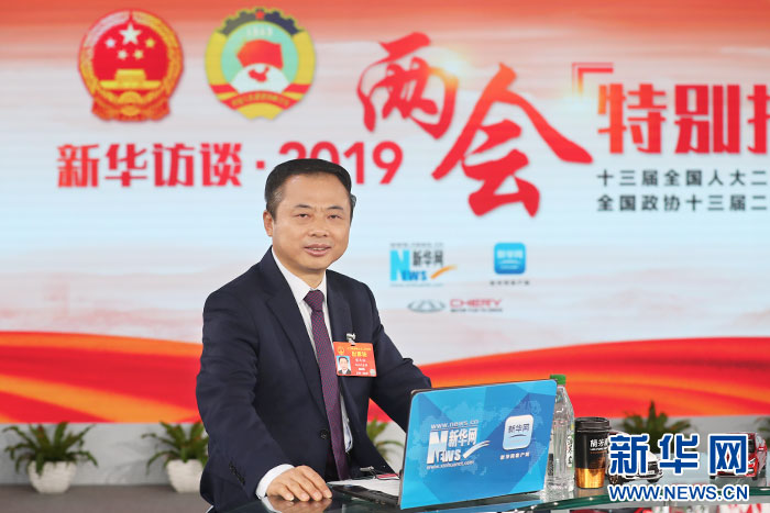 3月11日,全國人大代表、天能集團董事局主席張天任做客新華網2019全國兩會特別報道。 新華網 郭小天 攝