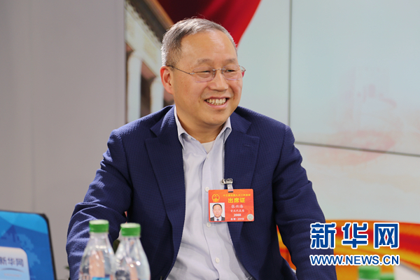 3月11日,全國(guó)人大代表,重慶小康工業(yè)集團(tuán)股份有限公司董事長(zhǎng)張興海做客新華網(wǎng)。新華網(wǎng) 毛嘉偉 攝