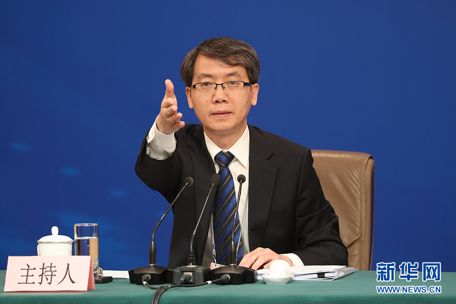 十三屆全國人大二次會議新聞中心3月11日(星期一)10時30分在梅地亞中心新聞發布廳舉行記者會,邀請國家市場監督管理總局局長張茅、國家藥品監督管理局局長焦紅、國家知識產權局局長申長雨就“加強市場監管 維護市場秩序”相關問題回答中外記者提問。圖為記者會主持人。新華網/中國政府網 陳杰?攝