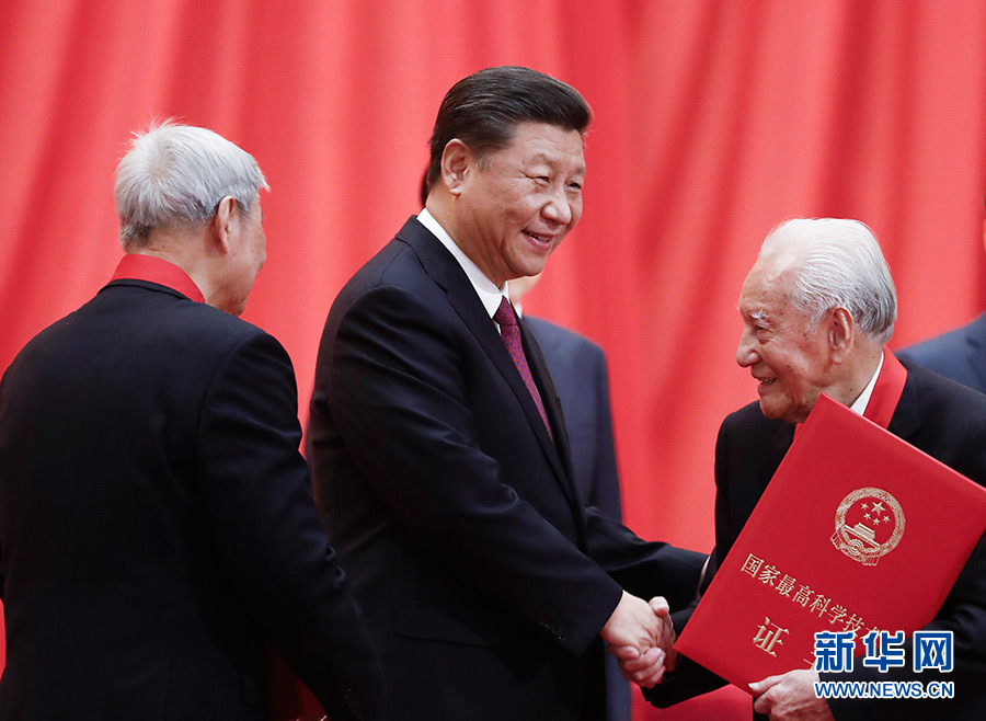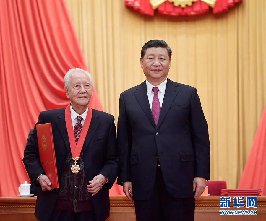 1月10日,2019年度國(guó)家科學(xué)技術(shù)獎(jiǎng)勵(lì)大會(huì)在北京人民大會(huì)堂隆重舉行。中共中央總書記、國(guó)家主席、中央軍委主席習(xí)近平向獲得2019年度國(guó)家最高科學(xué)技術(shù)獎(jiǎng)的原中國(guó)船舶重工集團(tuán)公司第七一九研究所黃旭華院士頒獎(jiǎng)。 新華社記者 李學(xué)仁 攝