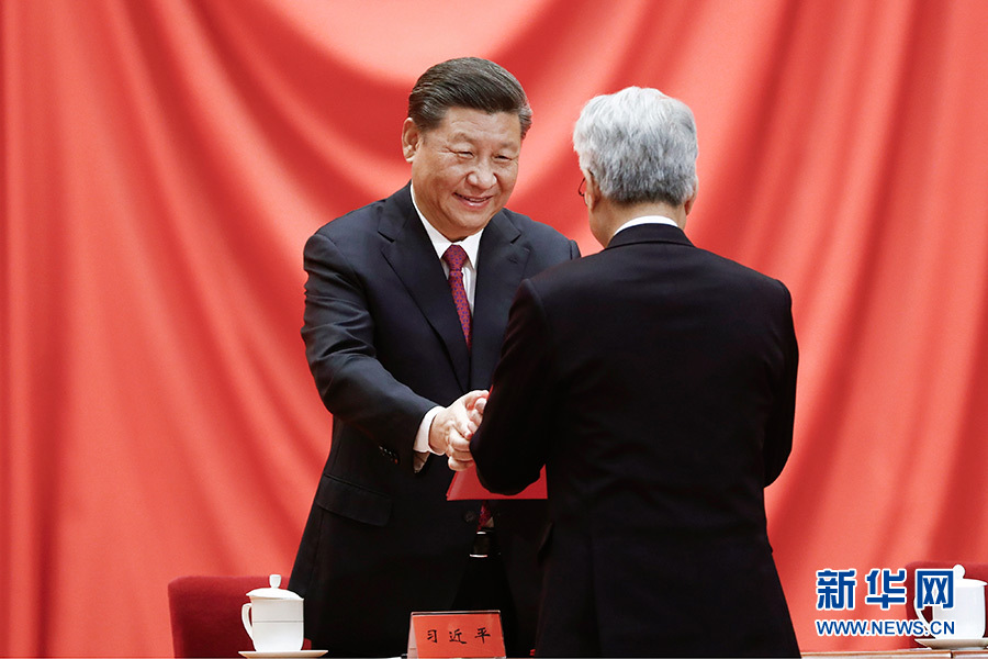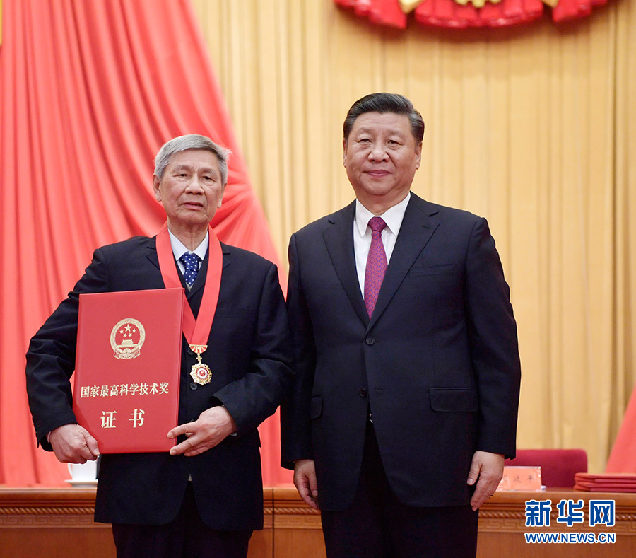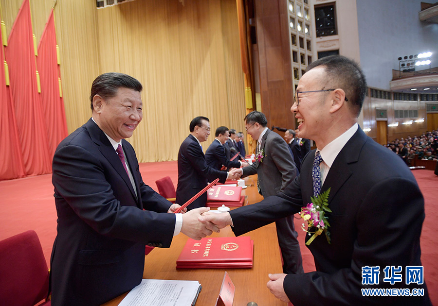 1月10日,2019年度國(guó)家科學(xué)技術(shù)獎(jiǎng)勵(lì)大會(huì)在北京人民大會(huì)堂隆重舉行。這是中共中央總書記、國(guó)家主席、中央軍委主席習(xí)近平向獲獎(jiǎng)代表頒發(fā)證書。 新華社發(fā)(盛佳鵬 攝)