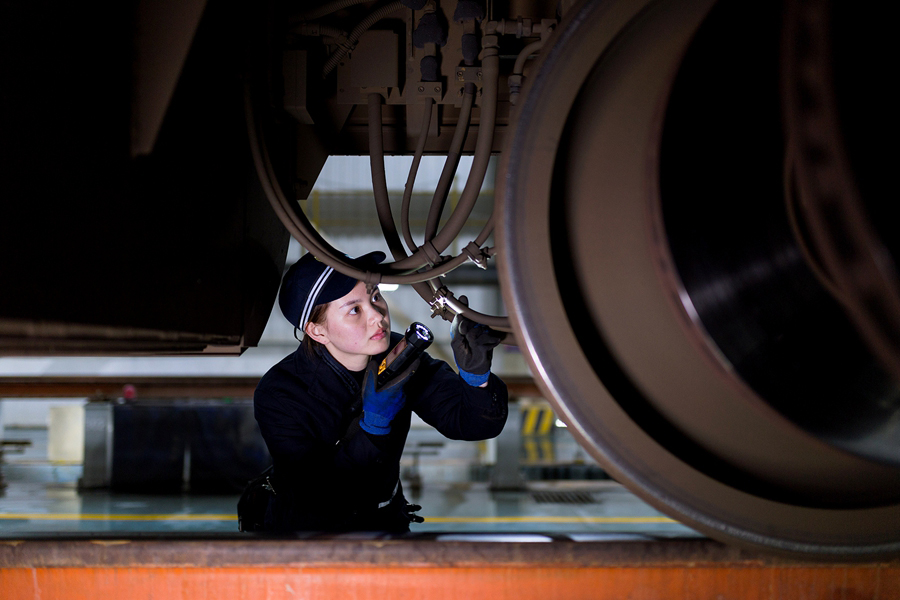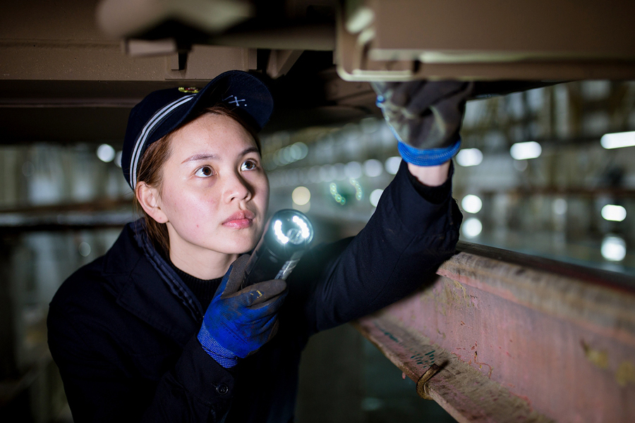 “我們這個崗位最重要的是細心,車底螺絲是否移位、電纜接頭是否松動,不敢放過一個細節,比如說動車底盤的天線,遇到北方冰凍雨雪天氣時,易被冰塊砸出裂紋,如沒及時發現,將會對列車信息傳輸造成直接影響。”向念說。