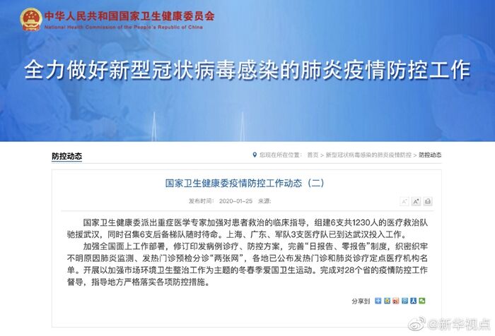 國家衛生健康委員會25日發布疫情防控工作動態,派出重癥醫學專家加強對患者救治的臨床指導,組建6支共1230人的醫療救治隊馳援武漢,同時召集6支后備梯隊隨時待命。上海、廣東、軍隊3支醫療隊已到達武漢投入工作。(記者溫競華、王秉陽)?