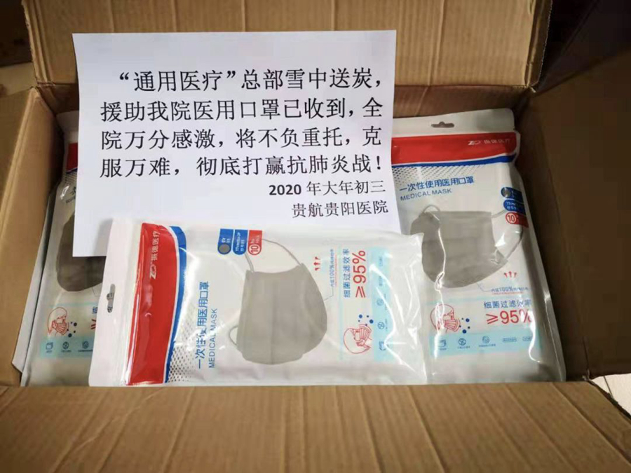 航空工業通用醫療三〇〇醫院籌集的物資運抵醫院
