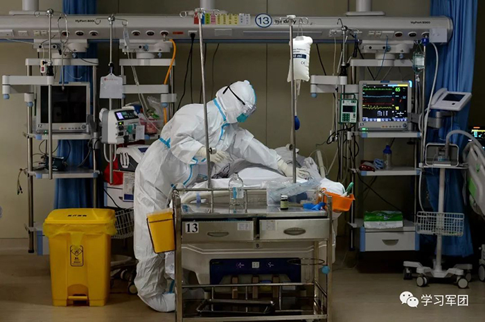 1月27日上午,海軍軍醫(yī)大學(xué)醫(yī)療隊(duì)醫(yī)護(hù)人員在漢口醫(yī)院重癥監(jiān)護(hù)室對(duì)新型冠狀病毒感染的肺炎患者進(jìn)行救治。醫(yī)護(hù)人員密切關(guān)注患者病情,根據(jù)變化調(diào)整輸液速度。解放軍報(bào)記者范顯海攝