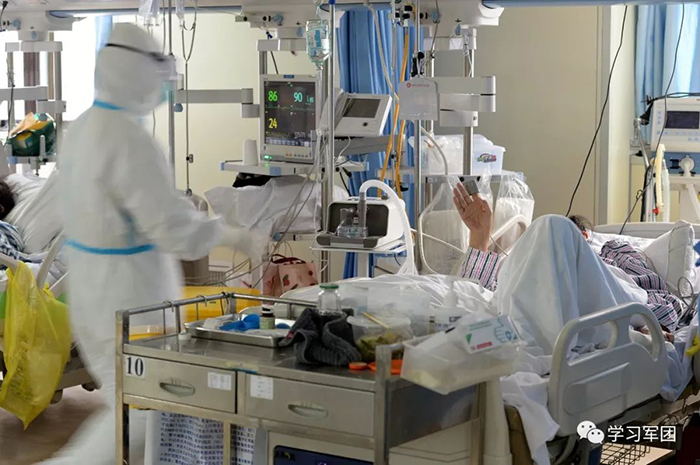 1月27日上午,海軍軍醫(yī)大學(xué)醫(yī)療隊(duì)醫(yī)護(hù)人員在漢口醫(yī)院重癥監(jiān)護(hù)室對(duì)新型冠狀病毒感染的肺炎患者進(jìn)行救治。在患者眼中,醫(yī)護(hù)人員就是他們的“救星”。解放軍報(bào)記者范顯海攝