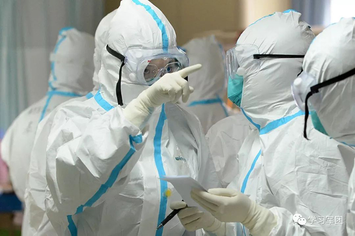 1月27日上午,海軍軍醫(yī)大學(xué)醫(yī)療隊(duì)醫(yī)護(hù)人員在漢口醫(yī)院重癥監(jiān)護(hù)室對(duì)新型冠狀病毒感染的肺炎患者進(jìn)行救治。醫(yī)護(hù)人員查看檢查結(jié)果,評(píng)估患者病情。解放軍報(bào)記者范顯海攝