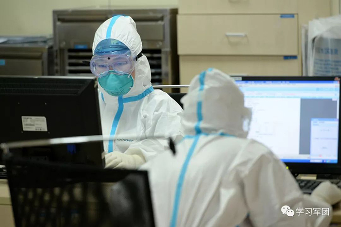 1月27日上午,海軍軍醫(yī)大學(xué)醫(yī)療隊(duì)醫(yī)護(hù)人員在漢口醫(yī)院重癥監(jiān)護(hù)室對(duì)新型冠狀病毒感染的肺炎患者進(jìn)行救治。醫(yī)護(hù)人員認(rèn)真記錄醫(yī)療文書,執(zhí)行醫(yī)囑。解放軍報(bào)記者范顯海攝