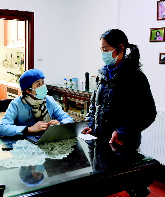 孫婉清(右)在家中接受新華社記者采訪(1月29日攝)。新華社記者李賀攝