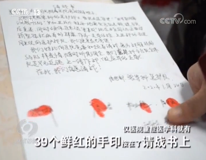 不到一天的時(shí)間,四川南充川北醫(yī)學(xué)院附屬醫(yī)院僅醫(yī)院重癥醫(yī)學(xué)科就有39個(gè)鮮紅的手印按在了請(qǐng)戰(zhàn)書上。