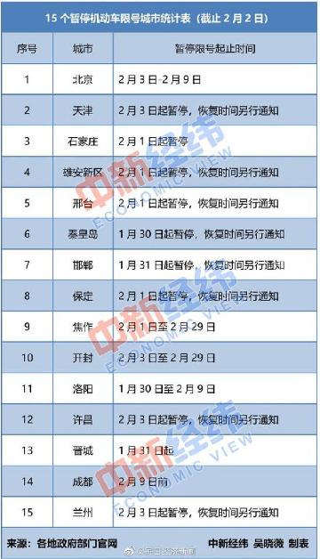對(duì)部分上班族來說,3日是正式復(fù)工的第一天。為了減少人員聚集和交叉感染,阻斷疫情傳播,近日北京、天津、石家莊、雄安新區(qū)、邢臺(tái)、秦皇島、邯鄲、保定、焦作、開封、洛陽、許昌、晉城、成都、蘭州共15城發(fā)布了暫停機(jī)動(dòng)車尾號(hào)限行的措施,減少民眾公共交通出行。