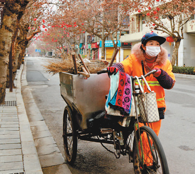 2月5日,湖北恩施市容環(huán)衛(wèi)管理局的環(huán)衛(wèi)工作者在清掃城市道路,維護(hù)環(huán)境衛(wèi)生。譚 華攝(人民視覺(jué))