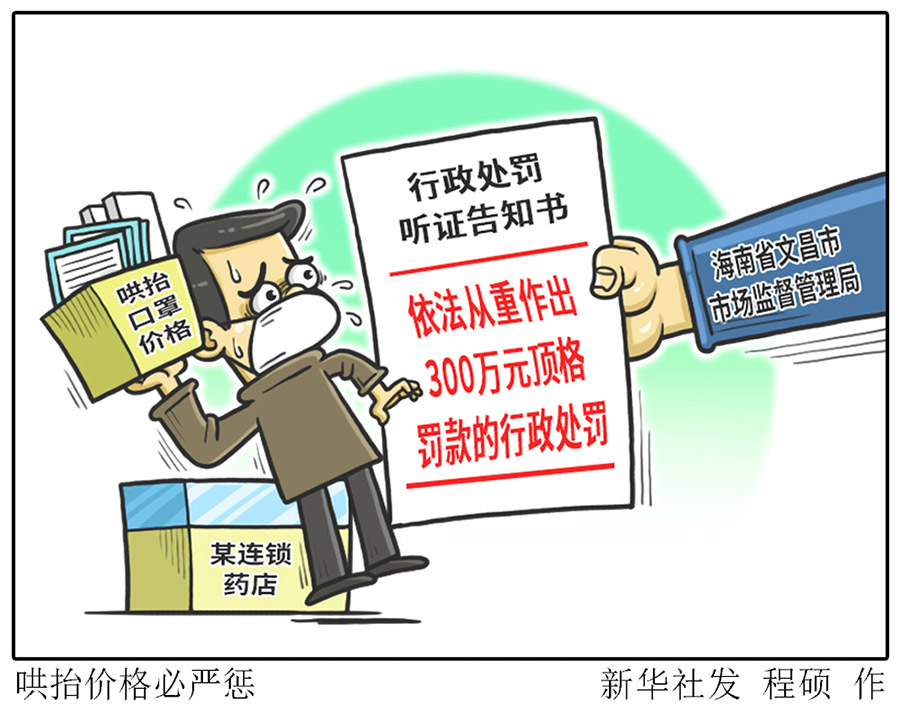 新華社海口2月6日電(記者吳茂輝)記者6日從海南省市場(chǎng)監(jiān)督管理局獲悉,近日,海南一九堂藥品連鎖經(jīng)營(yíng)有限公司因哄抬價(jià)格,被文昌市市場(chǎng)監(jiān)督管理局下達(dá)《行政處罰聽(tīng)證告知書》。根據(jù)這份告知書,這家公司將被罰300萬(wàn)元。