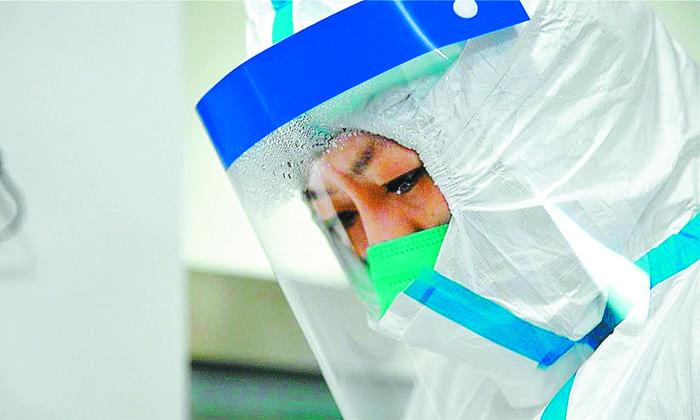 武漢協和醫院感染科護士喻銀燕正在工作。(武漢協和醫院供圖)