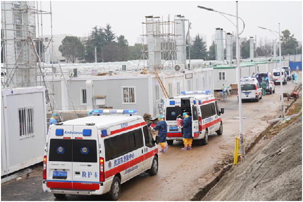 火神山醫院接收轉診患者。高輝攝