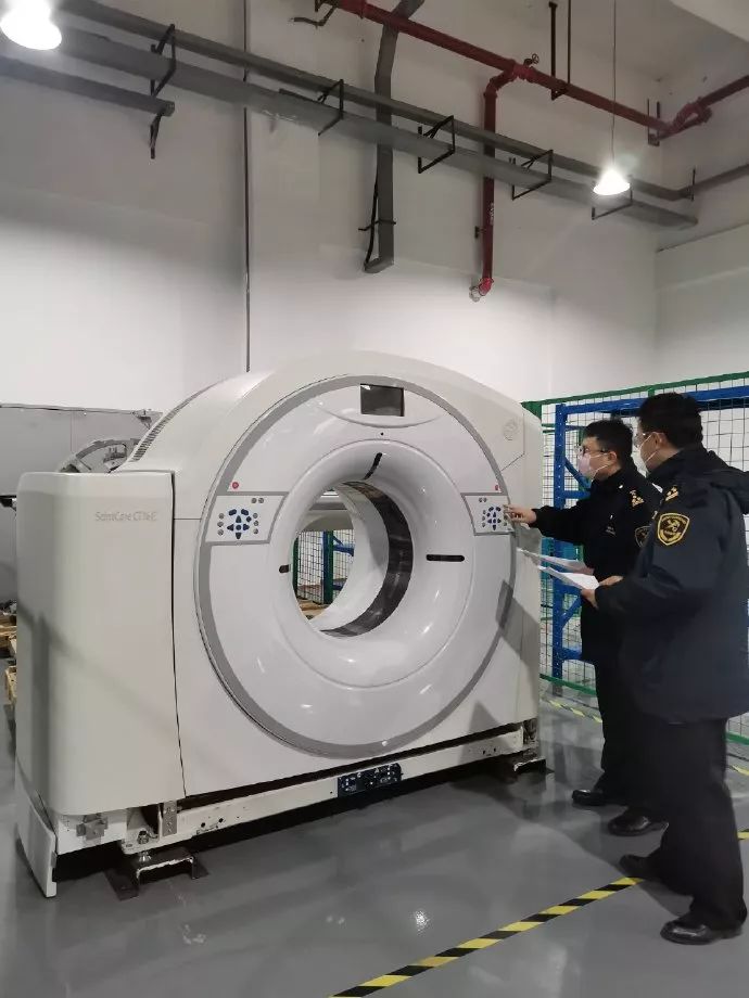2月7日,重慶海關(guān)所屬西永海關(guān)快速通關(guān)一臺(tái)重慶明峰醫(yī)療有限公司研發(fā)的CT機(jī),該臺(tái)CT機(jī)將用于組裝成“方舟”CT系統(tǒng)(新型應(yīng)急專用CT裝置)后發(fā)送到武漢,安裝在方艙醫(yī)院,用于新冠肺炎疑似病例篩查。